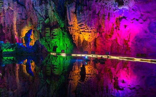 太乙洞相傳是太乙真人下凡為治理水患,造福民眾掘鑿的過水涵洞。主洞全長(zhǎng)2000余米,有支洞8條,大小景點(diǎn)100余處。這些自洞頂向下垂懸的石頭叫“鐘乳”,從地面向上生長(zhǎng)的叫“石筍”,這種奇特的景觀必須經(jīng)過漫長(zhǎng)的歲月才能孕育而成,堅(jiān)持不懈,平凡也能變卓越。